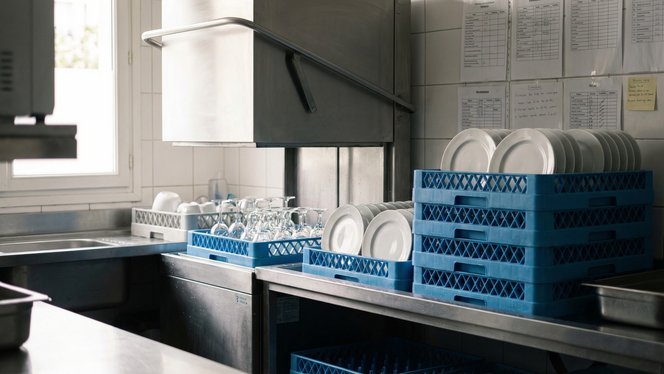 - un seul lave‑vaisselle professionnel pour tout l'établissement ;